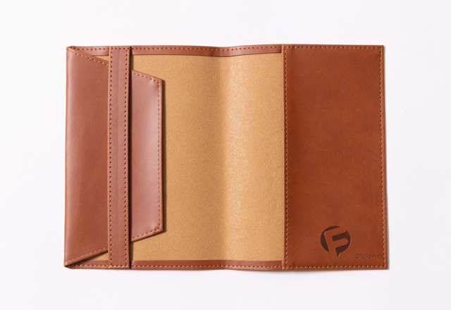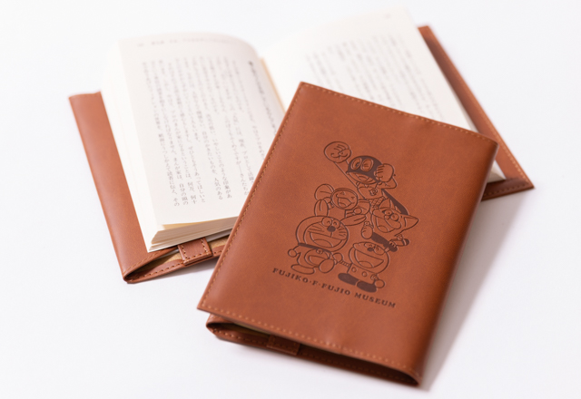 Fキャラクターたちの型押しがおしゃれな、落ち着いた色合いのブックカバーです。