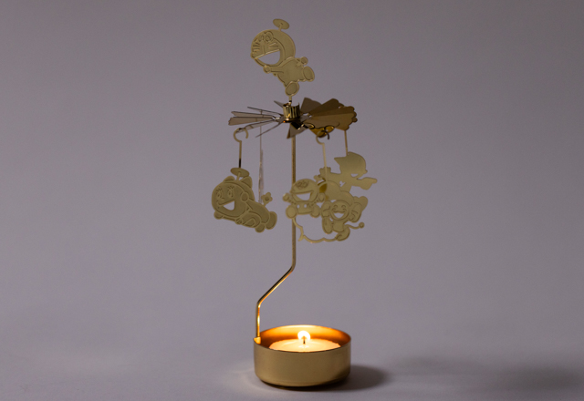 キャンドルに火を灯すと、熱の力でFキャラたちがゆっくりと回転します。