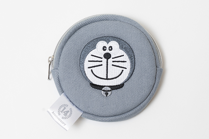 ドラえもんの刺繍が施された丸型のコインケースです。「14周年デニムドラえもんぬいぐるみ」と同じ生地を使用しています。小物の収納にもぴったりです!