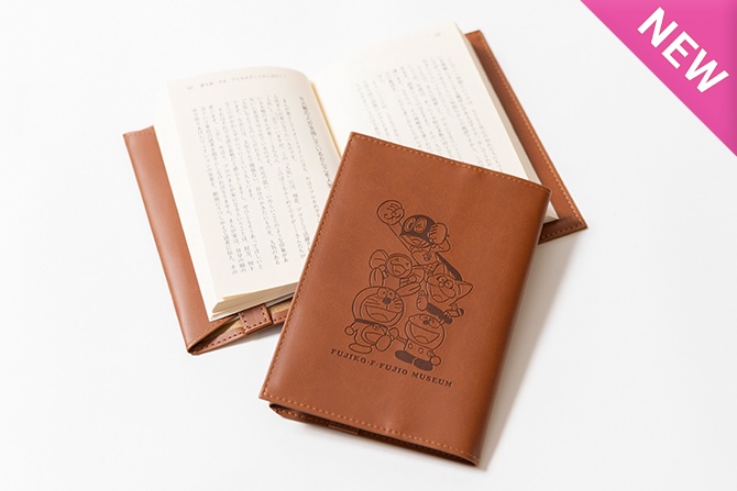 Fキャラクターたちの型押しがおしゃれな、落ち着いた色合いのブックカバーです。