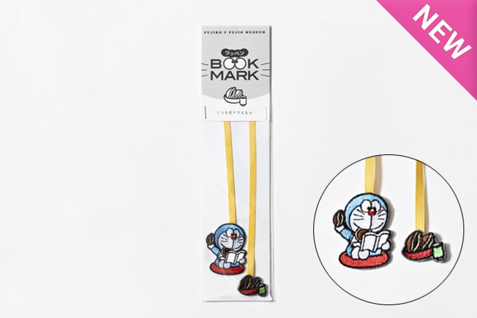 本や手帳、ブックカバーなどに貼り付けるだけでブックマークになるワッペンです。ミュージアムの2F「まんがコーナー」のくつろぎドラえもんがデザインされています。