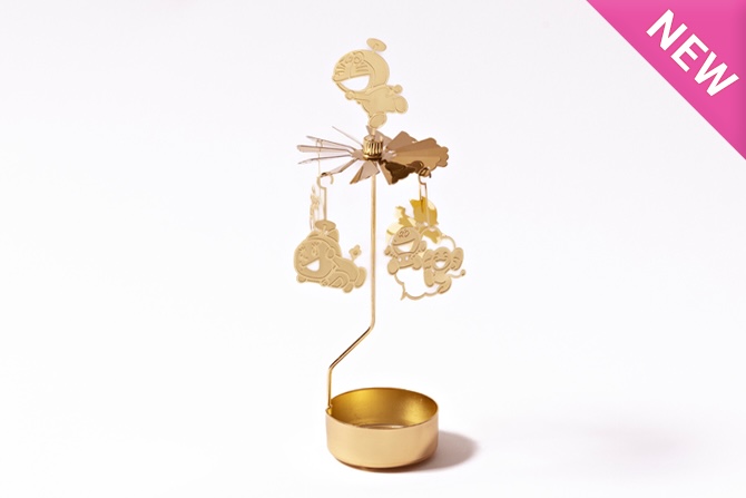 キャンドルを灯すと、熱の力でFキャラたちがゆっくりと回転します。炎の反射が幻想的な癒しの空間を演出。ギフトにもぴったりです。