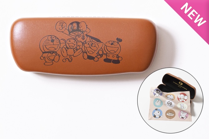 落ち着いた色合いのメガネケースと、Fキャラがデザインされた可愛いクロスのセットです。