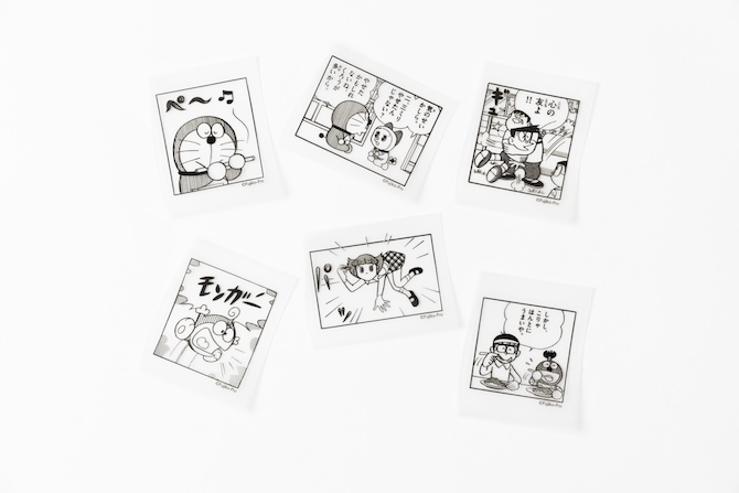 大人気の1コマステッカーに新柄が仲間入り!『ドラえもん』3種、『キテレツ大百科』、『エスパー魔美』、『21エモン』各1種の計6種です!耐水性のあるクリア素材のステッカーなので、スマートフォンやノートパソコン、ビニール傘などのデコレーションにぴったり!