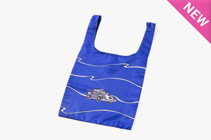 本体をくるっと丸めてゴムで留めることで、コンパクトに収納できる便利なエコバッグ。深海をイメージしたブルーに映える波模様がアクセント。大人も使いやすいデザインです。