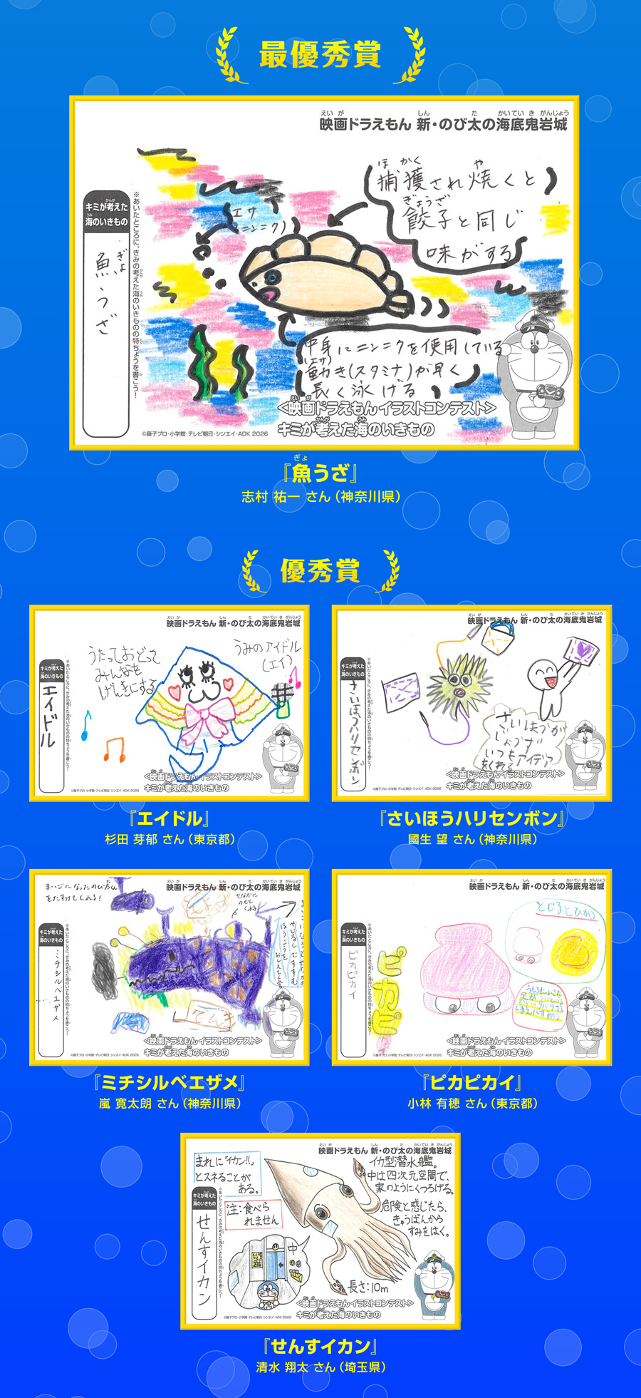 【結果発表!】映画ドラえもん「キミが考えた海のいきものイラストコンテスト」